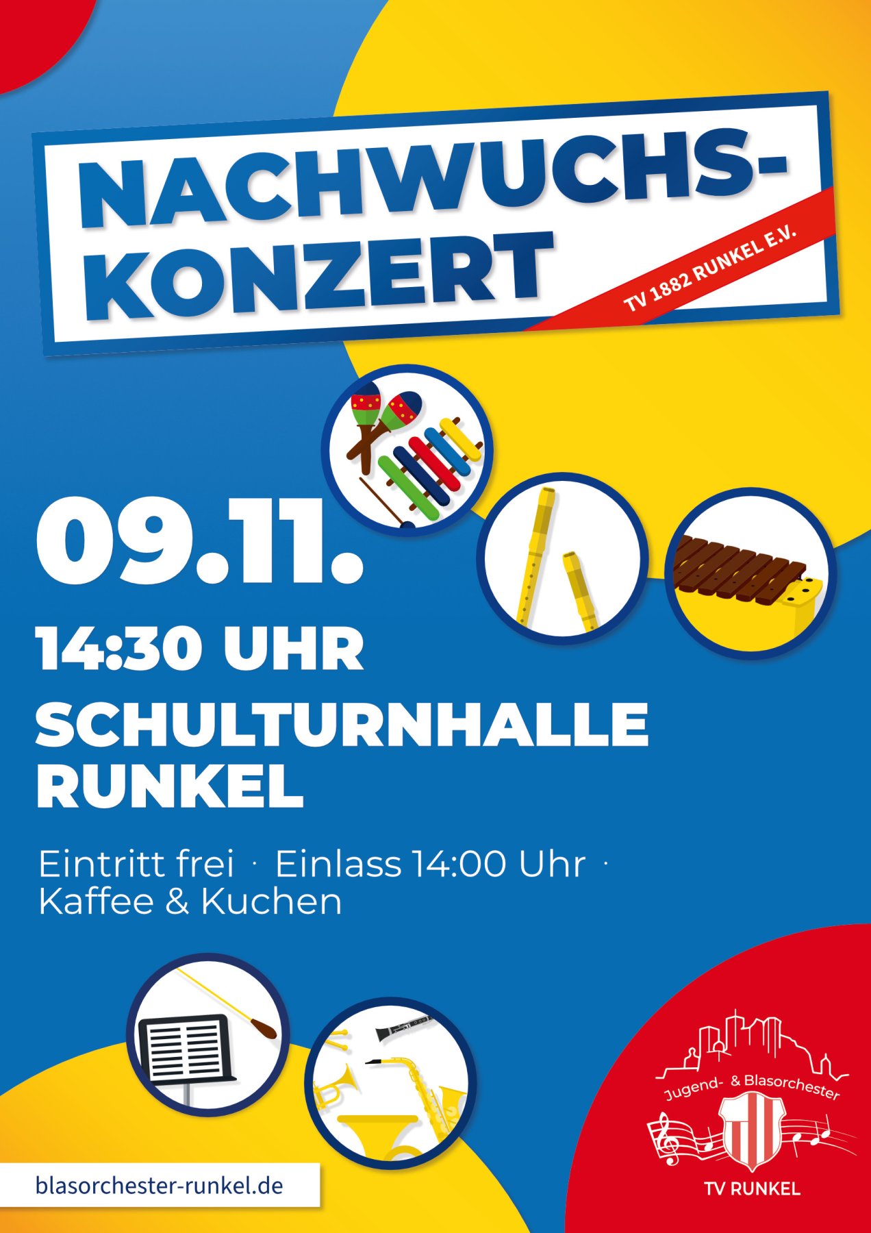 Dieses Jahr gibt es im November wieder ein Konzert, bei dem unserer Nachwuchsmusikerinnen und -musiker ihr Können zeigen. Am 09.11.2025 freuen wir uns, alle Kinder, Eltern, Verwandte und Freunde des Blasorchesters in der Turnhalle der Johann-Christian-Senckenberg-Schule in Runkel zu begrüßen.